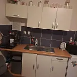 작은 부엌에서는 손님이 직접 식사를 할 수 있습니다. 이 25m² 아파트는 포프라드 공항에서 5km 떨어져 있습니다.